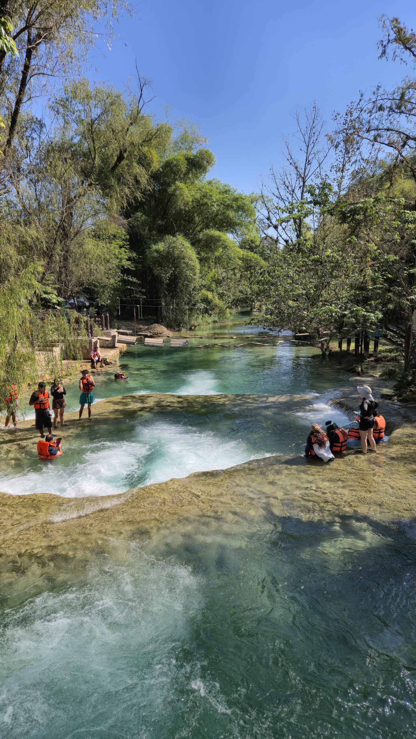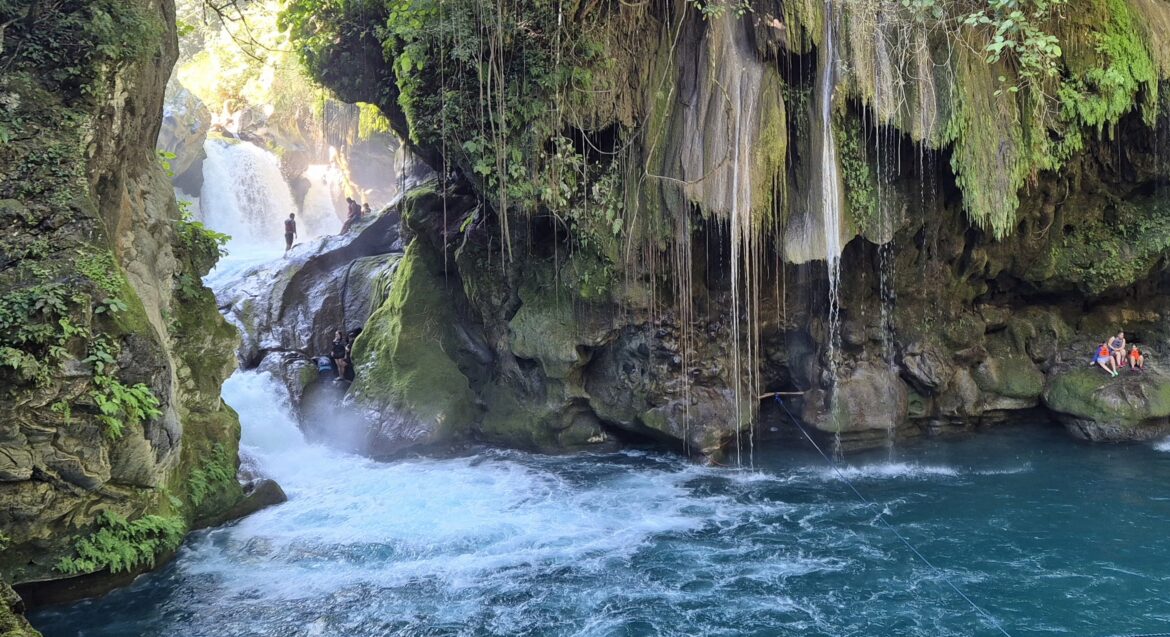 Je vindt hier meerdere watervallen, stroomversnellingen en spartelvijvers. Er zijn touwbruggen om het groen-blauwe water over te steken en op de picknickbankjes bewaken Mexicaanse moeders de tassen van hun kroost. Mede dankzij voorzieningen als kleedkamers, lockers en restaurants is het minder authentiek dan Puente de Dios. Toch kun je je hier ook prima vermaken, dankzij de gemoedelijke sfeer onder Mexicaanse families, de prachtige bloemen en planten en het afsluiten van weddenschappen of de Mexicaanse Carlos wel of niet van de hoogste rots durft te springen.